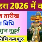 Posted inFestival दशहरा 2026: तारीख, मुहूर्त, पूजा विधि और उत्सव का महत्व दशहरा 2026, विजयादशमी के रूप में, अच्छाई की बुराई पर जीत का प्रतीक है। यह पर्व भगवान राम… Posted by lordkart August 4, 2025