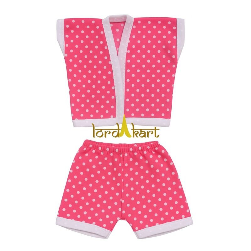 ₹19.00 – ₹89.00Price range: ₹19.00 through ₹89.00Dot Printed Pink Cotton Summer Night Suit for Ladoo Gopal