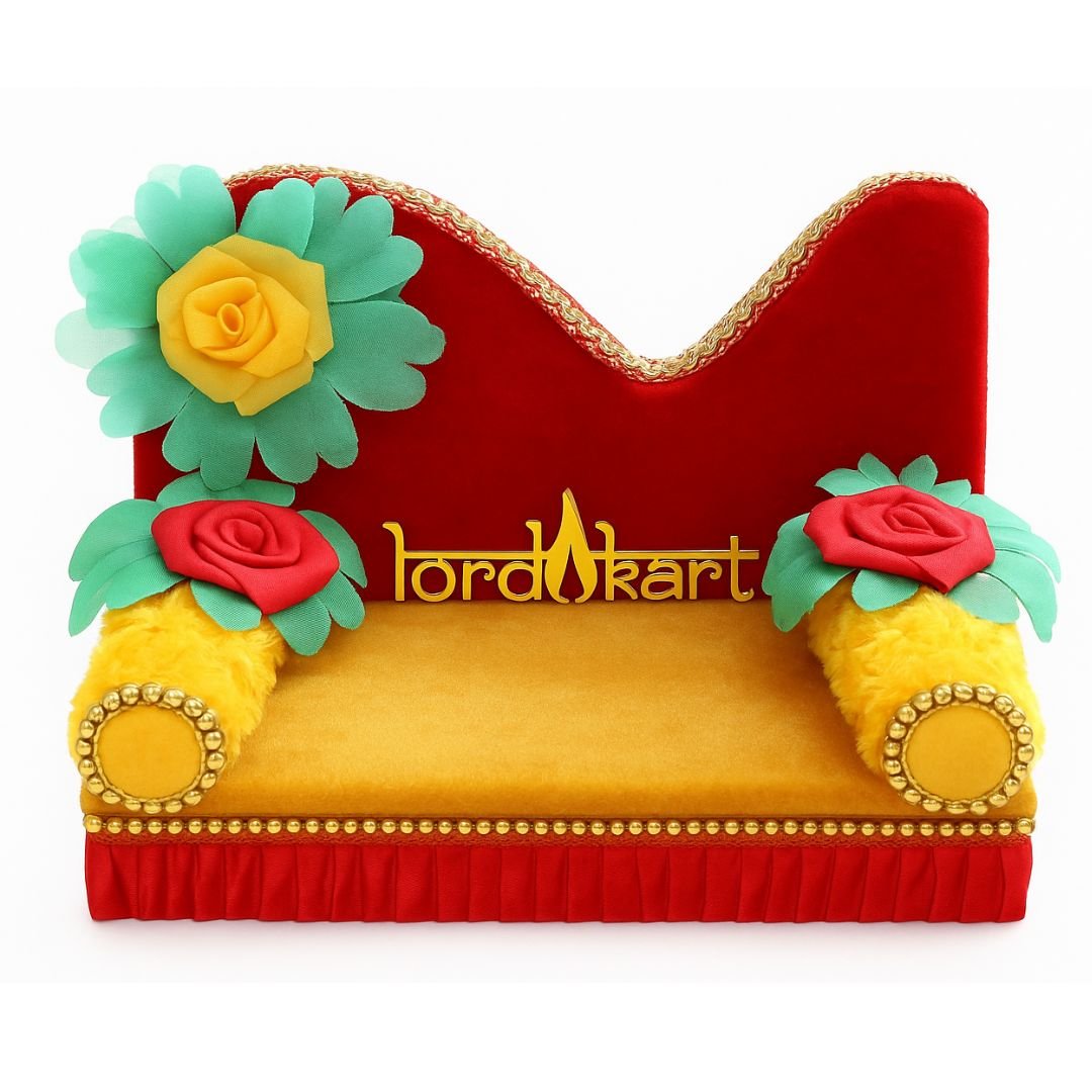 Beautiful Yellow and Red Velvet Bed for Laddu Gopal Ji for Janmashtmi