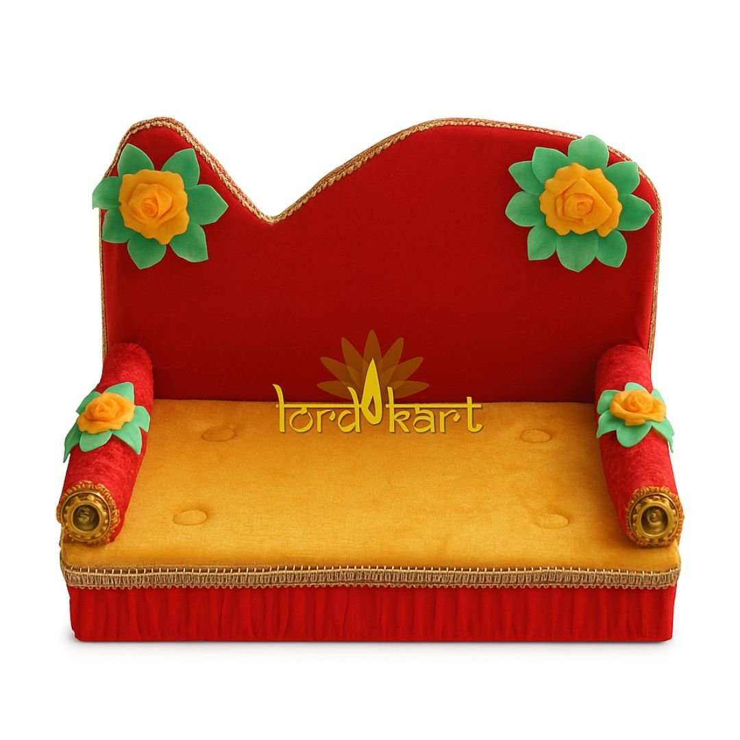 Handicraft Red Color Laddu Gopal Silk Singhasan for Pooja Mandir