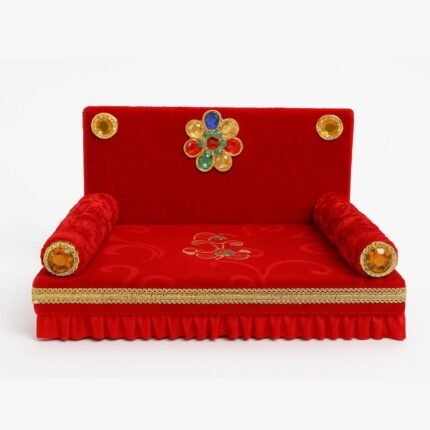 Handicraft Red Color Laddu Gopal Silk Singhasan for Pooja Mandir