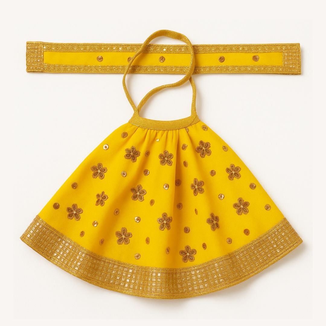 Handmade Maa Durga Yellow Color Lehenga Chunri with Patka