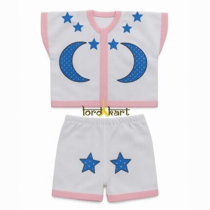 Star & Moon Printed Pink Cotton Summer Night Suit for Laddu Gopal